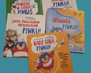 Polecam serię o Pinku, małym stworku, który zmaga się z różnymi trudnościami, które nie są obce także dzieciom. Z pomocą rodzica można wykonać proste ćwiczenia w formie rysunków, które są zamieszczone po każdej historii. Warto czytać!